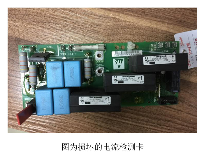 案例一:客戶反映有一臺 VLT6000 75KW 的變頻器出現(xiàn)報警并跳閘,報警不能復(fù)位,變頻器不能運(yùn)行。我們到現(xiàn)場首先檢查主電路是否正常,確認(rèn)正常無誤后再上電,然后查看變頻器報警記錄,發(fā)現(xiàn)有AL14報警,屬于接地故障報警。出現(xiàn)接地故障報警一般有兩個可能,要不就是電機(jī)或者變頻器真的出現(xiàn)接地系統(tǒng)故障,要不就是變頻器電流檢測電路故障導(dǎo)致的。于是我們首先排查外部原因,查看變頻器和電機(jī)的接地線是否連接正常,用搖表給電機(jī)和變頻器打絕緣查看是否達(dá)到絕緣要求,查看電機(jī)電纜線是否過長等等。經(jīng)仔細(xì)檢查,沒發(fā)現(xiàn)外部電路出現(xiàn)異常,那就基本可以確定是本身變頻器的電流檢測電路出現(xiàn)故障了。我們把變頻器的電流檢測卡更換后,AL14報警復(fù)位消除,變頻器恢復(fù)正常運(yùn)行。