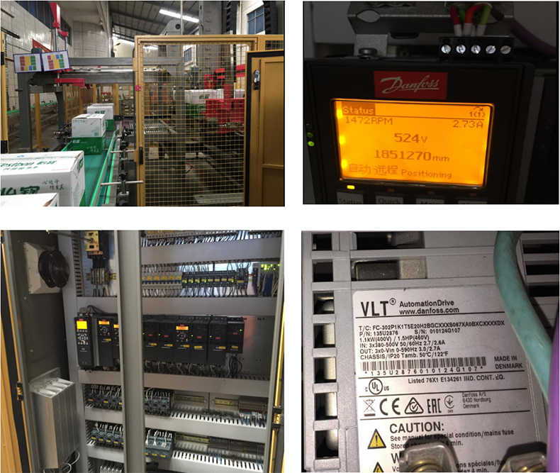 這次在東莞市莞怡食品飲料有限公司(生產怡寶品牌飲用水)的紙箱堆垛機上選用的丹佛斯 FC302+IMC 方案,通過現場實際運行證明 IMC 定位控制功能加上帶有編碼器反饋的異步電機拖動系統,可以很好的達到原設備的功能和生產要求,客戶也對丹佛斯 FC302 系列變頻器高性能表現給予了強烈的肯定。