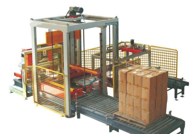 紙箱自動碼垛機是將已經裝好的產品,按一定排列碼放在托盤上,進行自動堆碼,可堆碼多層,然后推出,便于叉車運至倉庫儲存。實現智能化操作管理,簡便、易掌握。可大大地減少勞動人員和降低勞動強度,廣泛應用于食品、飲料、包裝等企業。