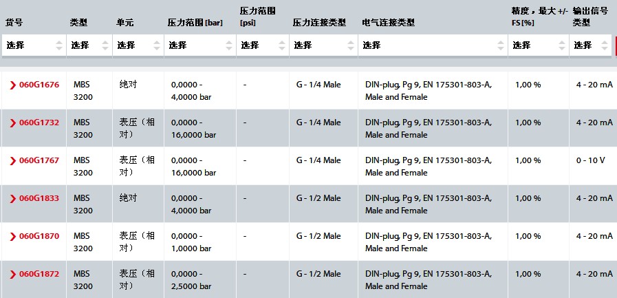 這款靈活的壓力變送器系列包括 4-20 mA、0-5 V、1-5 V、1-6 V 和 0-10V 輸出信號、絕對壓力和表壓(相對壓力)型號、從 0-1 到 0-600 bar 的測量范圍以及規格齊全的壓力和電氣連接。