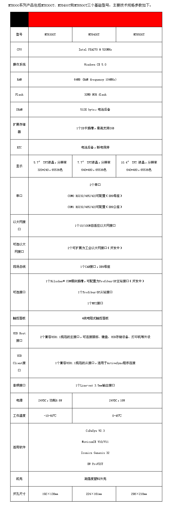 MT6000是步科電氣人機界面中的高端產品,其性能強大的intelPXA270520MHz處理器和界面友好的WindowsCE操作系統,將給你帶來全新的使用體驗。其開放式的編程環境和強大的通訊能力使其非常適用于工業自動化、樓宇自動化和智能家居等應用領域。