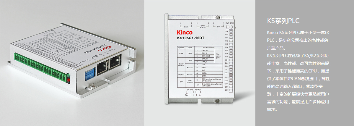 KS105C1和KS105C2本體自帶CAN接口,支持CANopen主站、從站和CAN自由協(xié)議,配合便利運(yùn)動(dòng)控制指令庫,為多軸應(yīng)用場合提供更高性價(jià)比的選擇