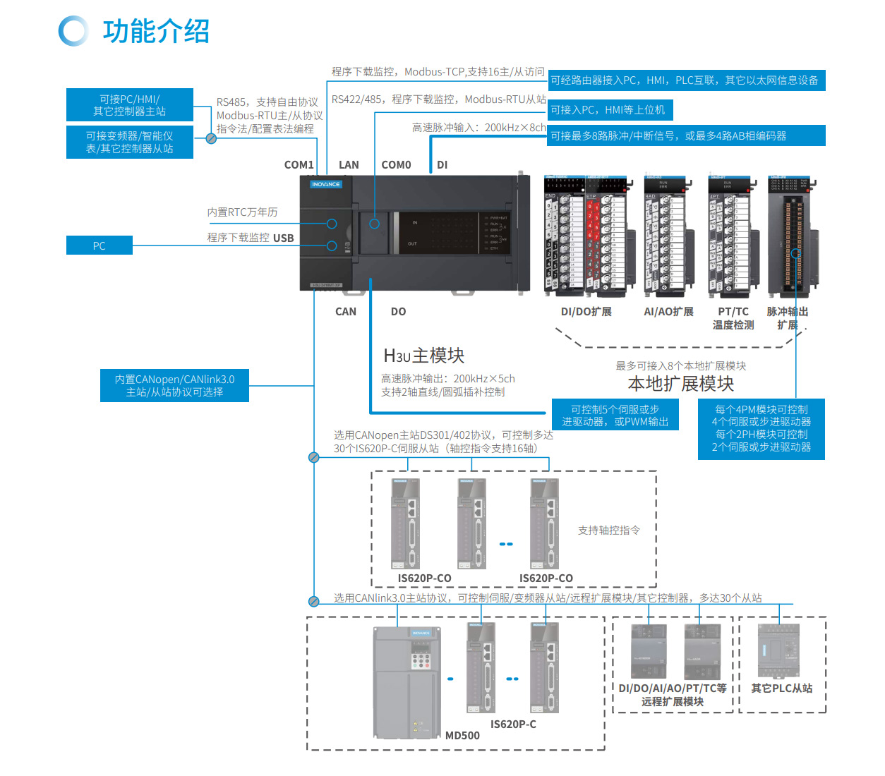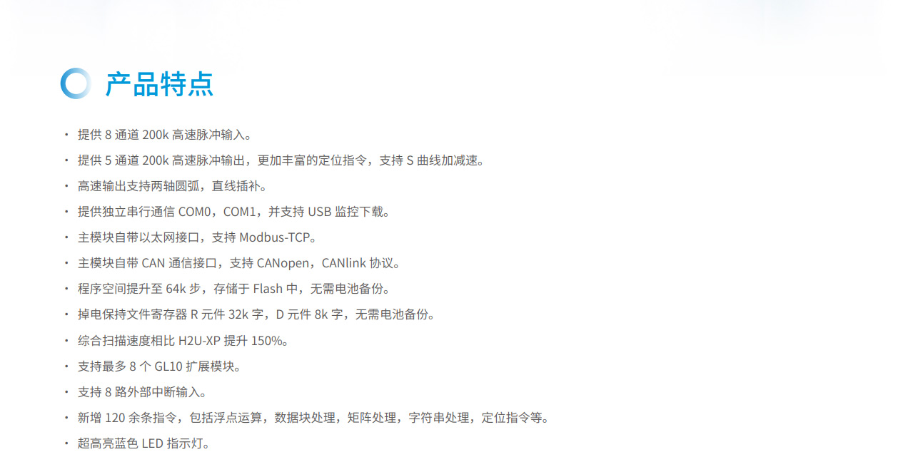 H3U系列PLC是匯川技術開發的第三代高性能小型PLC,采用新一代獨具匠心的PLC 架構技術,在增加更多豐富功能的情況下持續提升性能。配合完整且嚴格的軟件測試過程,使得PLC 穩定可靠,值得信賴