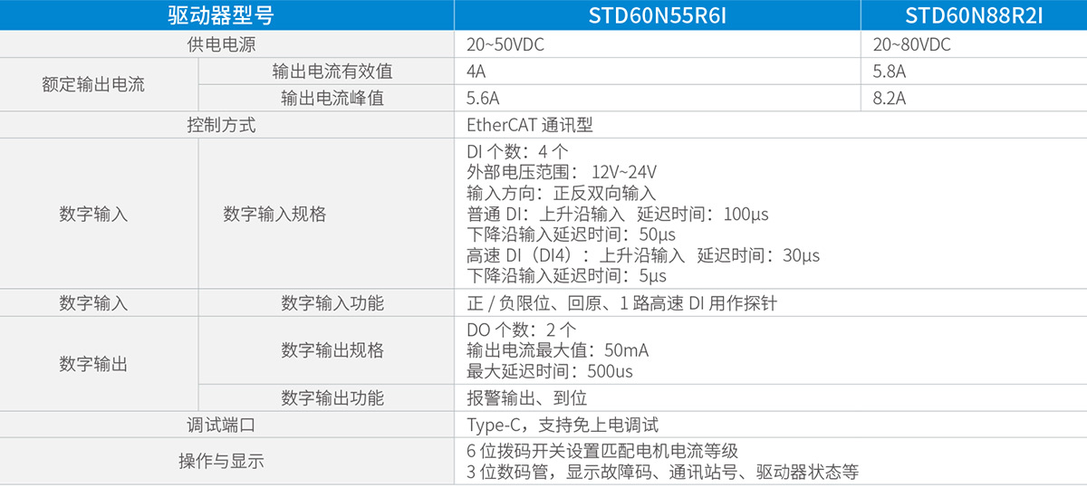 STD60N系列步進(jìn)驅(qū)動(dòng)器是匯川技術(shù)研制的一款發(fā)熱小、運(yùn)行平穩(wěn)、加速能力強(qiáng)以及支持Type-C調(diào)試的通用總線型步進(jìn)驅(qū)動(dòng)器。 該系列產(chǎn)品輸出電流范圍為0A~8.2A,支持標(biāo)準(zhǔn)EtherCAT通信協(xié)議,采用對(duì)應(yīng)的通信接口,配合上位機(jī)可實(shí)現(xiàn)多臺(tái)步進(jìn)驅(qū)動(dòng)器聯(lián)網(wǎng)運(yùn)行,搭載最新的工藝段功能,集回原、定速控制、定位控制于一體的多功能型位置模式,同時(shí)該模式不占上位機(jī)軸數(shù)。